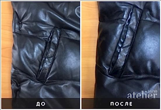 Укоротить кожаную куртку на пуху без шлиц и Пин Ап